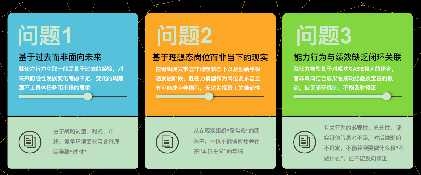 胜任力模型聚焦于“过去”,而非“未来”。胜任力模型萃取自过去工作历程中优秀员工的行为,但面向未来,这样的模型是否适用,这样的行为要求是否还能应对?